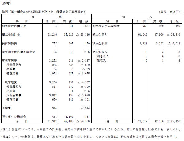 12の発電用原子炉設置者等から拠出金(379億円:第一種 330億円、第二種 48億円)を徴収し、公益財団法人原子力環境整備促進・資金管理センターに積み立てた。