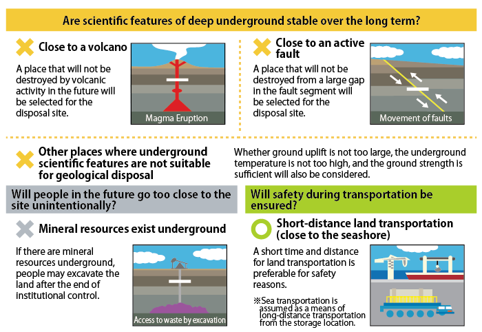 To ensure long-term safety, the disposal site will be carefully selected to avoid impacts from volcanic activity and active faults,