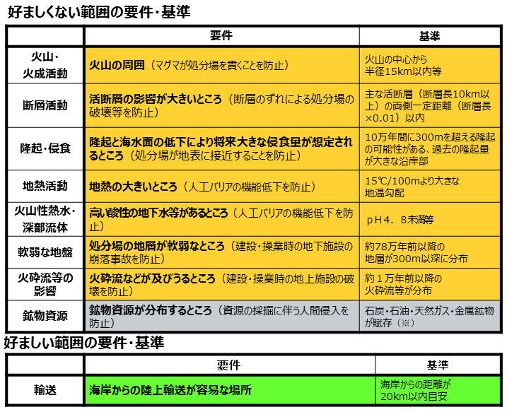 「科学的特性マップ」の要件・基準および地域特性の区分